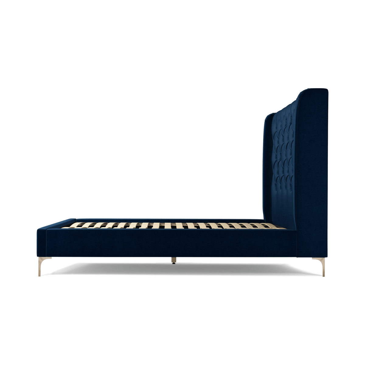 Custom MADE Romare Bed, Double in Regal Blue Velvet with Brass Legs