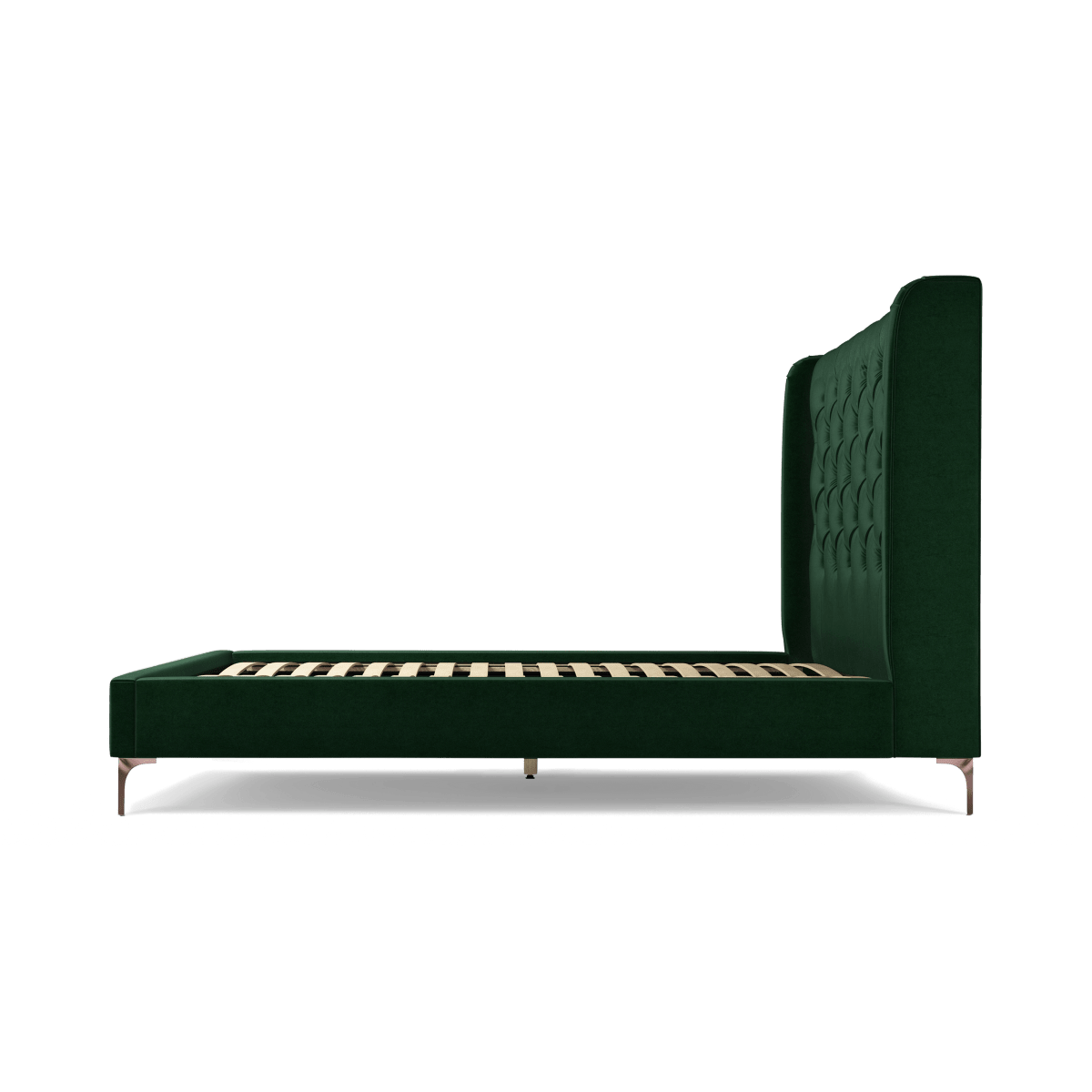Custom MADE Romare Bed, King Size in Bottle Green Velvet with Copper Legs