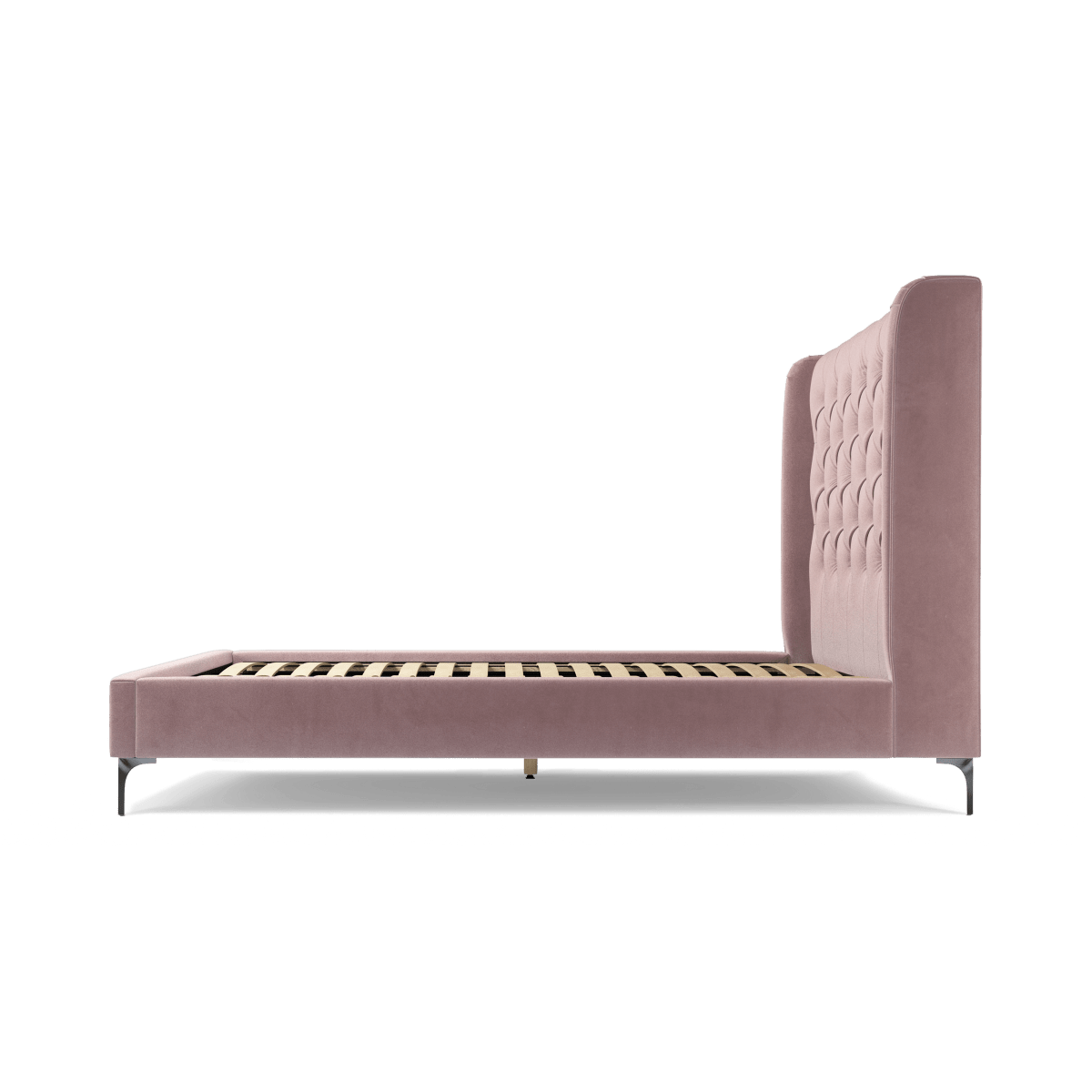 Custom MADE Romare Bed, King Size in Heather Pink Velvet with Nickel Legs