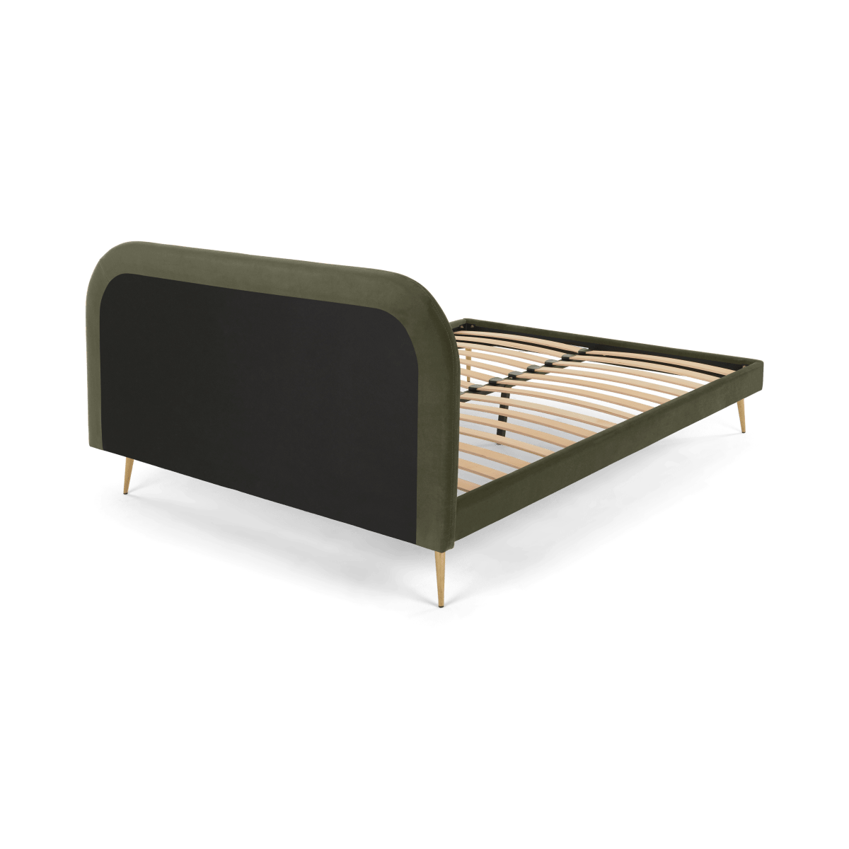 Eulia King Size Bed, Sycamore Green Velvet with Brass Legs