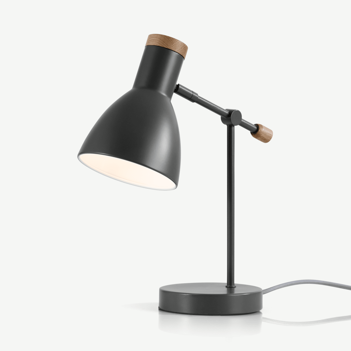 Cohen Bedside Table Lamp, Deep Grey and American Oak