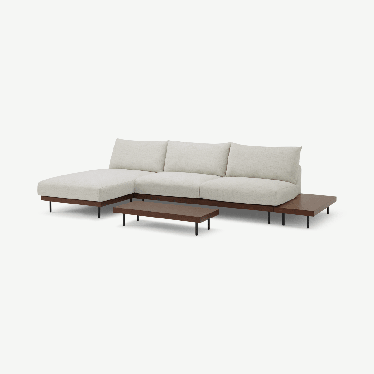 Zita Modular Chaise End Corner Sofa with 2 Side Tables, Kyoto Oyster