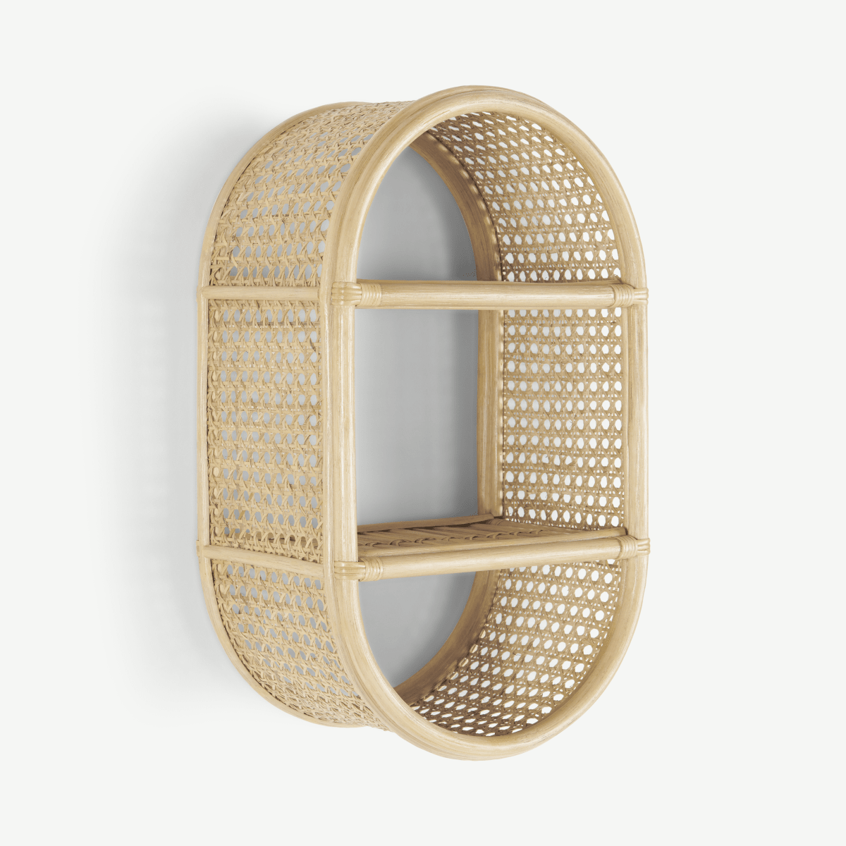 Clare Wall Mounted Natural Rattan Shelves, Natural