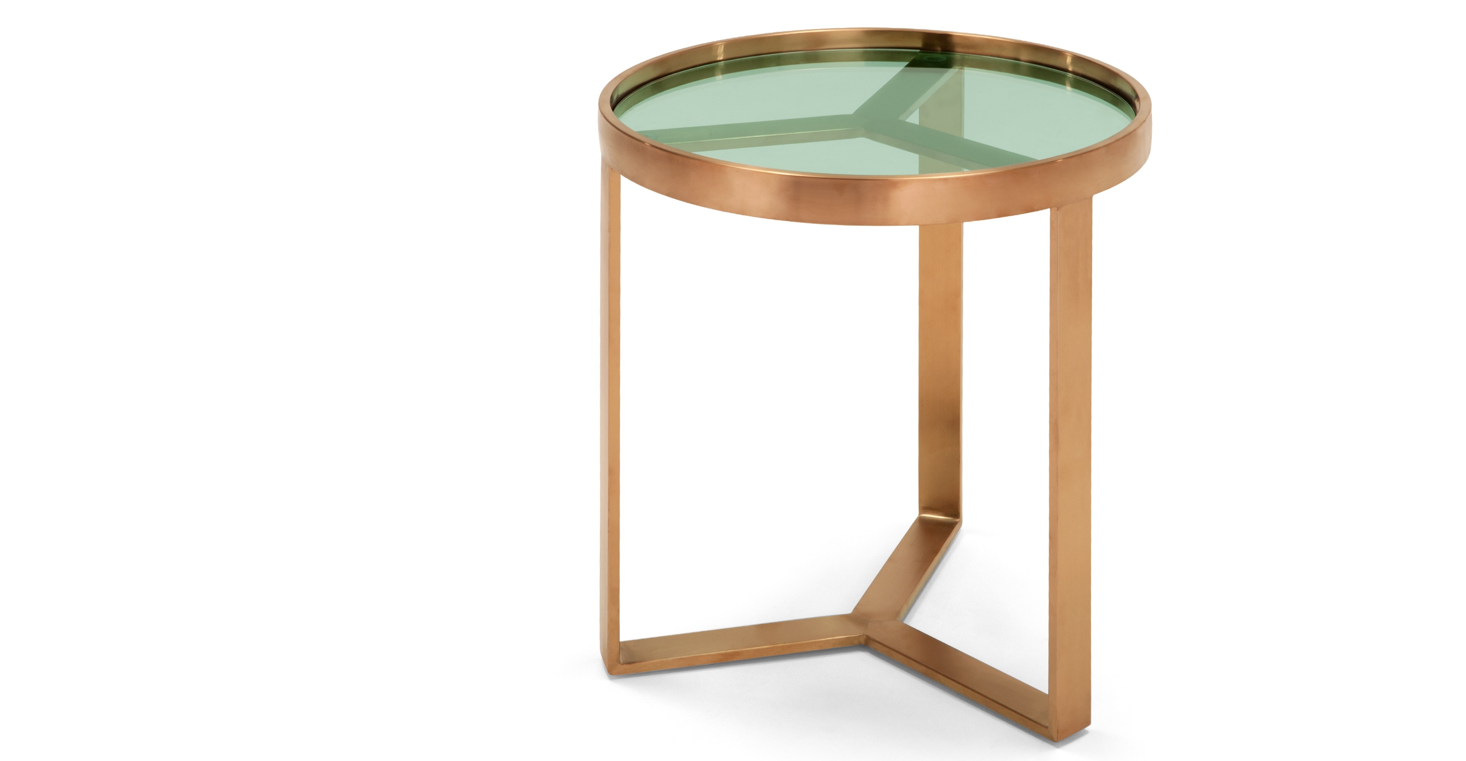 Aula Side Table, Brushed Copper and Green Glass